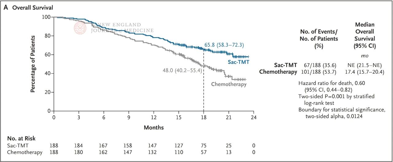 图2. sac-TMT组和化疗组的OS期中分析结果