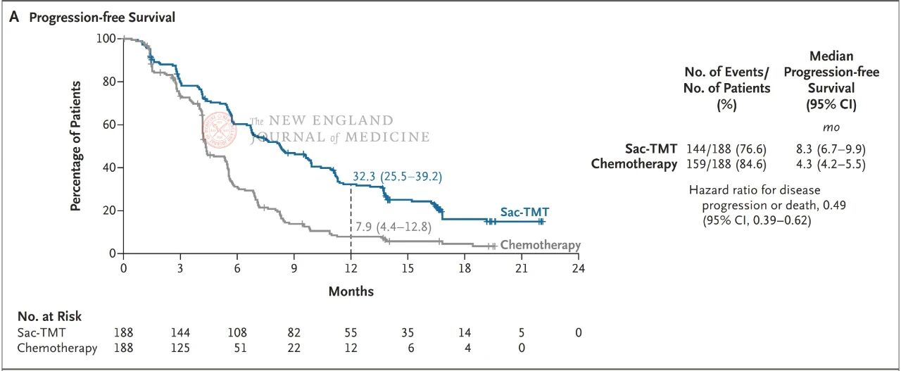 图1. sac-TMT组和化疗组的PFS分析结果