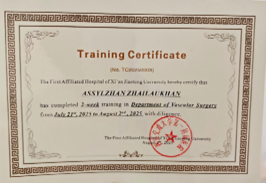近日,为期两周的哈萨克斯坦医科大学住院医师培训交流项目(KSPH)在西安交通大学第一附属医院圆满落幕。参与此次交流的哈萨克斯坦国际交流生Assylzhan,在临别之际专程向一附院血管外科陆港院区全体同仁,特别是指导老师黄勋主治医师、禄韶英主任献上诚挚谢意,用跨越国界的真挚情感,为这段跨国医学研修之旅画上温暖句点。