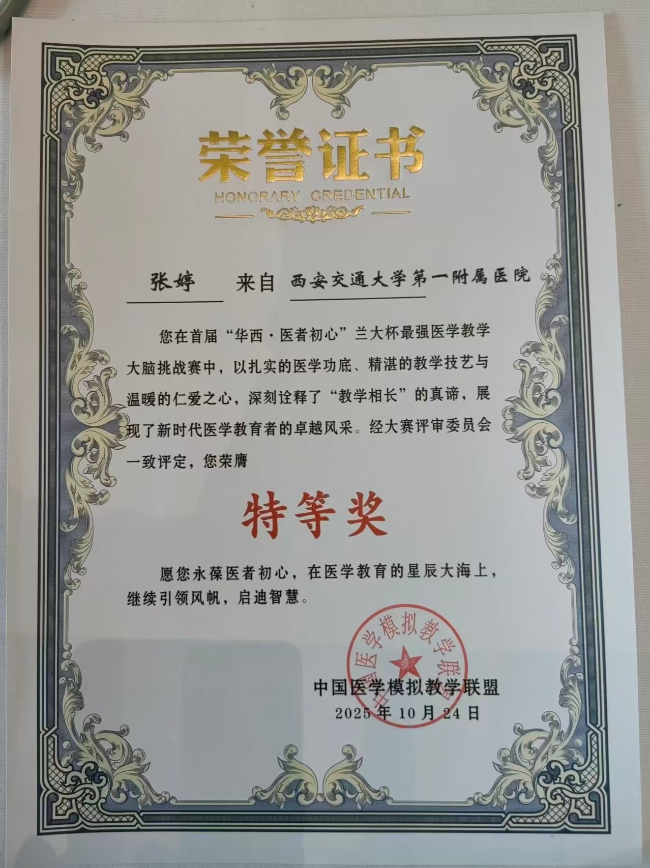 我院张婷老师斩获首届中国智慧医学教育大赛“华西·医者初心”最强医学教学大脑挑战赛特等奖