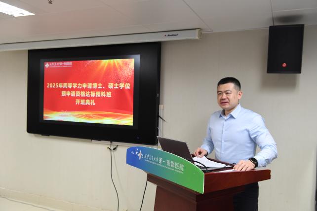 为进一步强化预科班管理,提升预科班质量,在李小鹏副院长的悉心指导下,我院教学部于12月25日上午在科教楼成功举办了2025年“同等学力申请博士、硕士学位预申请资格达标预科班”开班典礼暨培训活动。医学部人才培养处研究生主管卢阳老师和我院副院长李小鹏、教学督导专家马清涌、科技部科研管理中心副主任兼综合与计划办公室主任李光月、老年医学科副主任任延平、检验科副主任刘军辉、涉外病房(一)惠晓丽老师,以及教学部李雁部长、图书馆徐静副研究馆员、吴少东老师、习博老师和学员代表参会。会议由教学部副部长兼住培办主任祁磊主持。