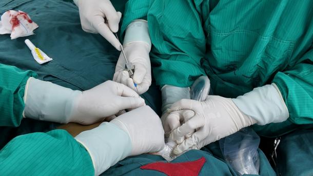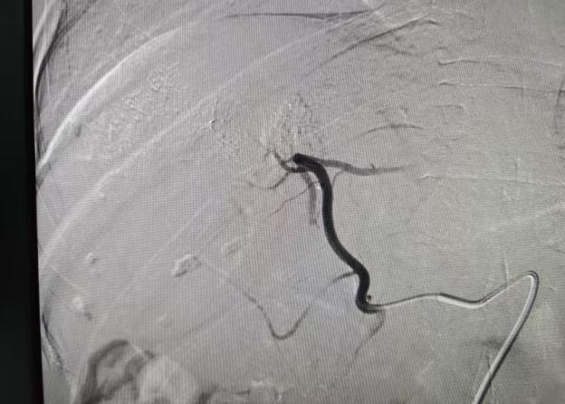 2025年2月20日按照治疗计划,王瑞涛副主任医师行精细化经导管肝动脉化疗药物灌注栓塞术(TACE),术中彻底栓塞肿瘤供血分支动脉,并注入碘化油及化疗药物杀灭肿瘤,术后患者耐受尚可,肝功轻微波动。TACE术后12天(2025年3月5日)经过术前评估,张晓刚主任医师行腹腔镜门静脉右支结扎+放射性粒子植入术,进一步控制肿瘤同时促进肝左叶增大,TACE术后17天(2025年3月10日)开始给予口服靶向药(仑伐替尼)联合免疫治疗(普特利单抗)。