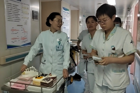 当护士们推着治疗车,唱着《生日快乐歌》走进病房时,原本安静的病房瞬间被点亮了。患者和家属都愣住了,随即眼中泛起了感动的泪光。