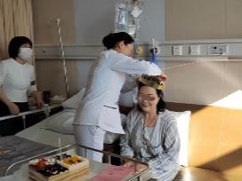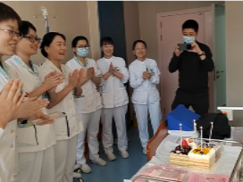 “祝您生日快乐!祝您早日康复!”护士们围在病床旁,齐声送上祝福。护士长亲手将小礼物送给患者,并握着她的手说:“虽然您现在不能吃蛋糕,但这份甜蜜的祝福,我们大家一起替您‘吃’进心里。您要加油,我们都在陪着您!”