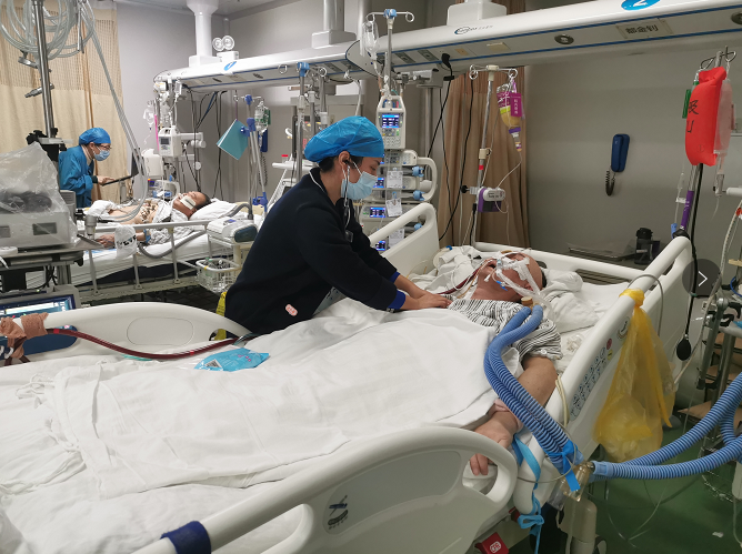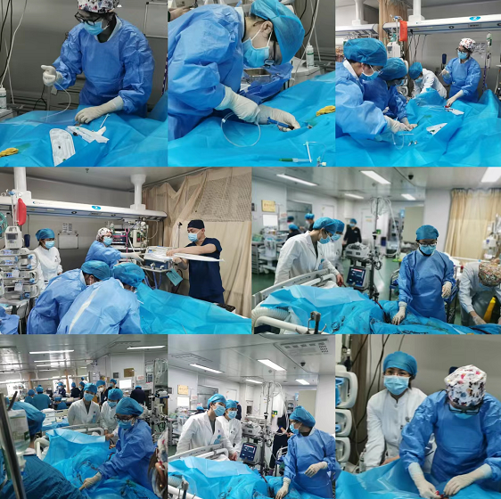 知情同意书签署的同时,心外科ECMO团队、呼吸ICU团队立即就位。在心外科郭锋伟副主任医师,呼吸ICU李洋副主任的指导下,呼吸科庞亚梅副主任医师、刘亚主治医师、李少军住院医师以及付蓉、熊倩主管护理师等的默契配合下,ECMO治疗迅速启动,顺利的完成了调试机器、管路预充、穿刺置管。随着人工膜肺运行鲜红富氧的血液泵入体内,患者的缺氧情况迅速得到了改善,生命体征逐步恢复正常。