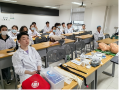 随后,进入了常见急救技术的单项培训及现场观摩实践环节,包括院前急救技术AED的使用,创伤基本救护技术,院内的气管插管置入及配合技术。赵亚锋老师演示了AED的使用,闵焕娣老师详细讲解和演示了气管插管技术和配合技术,张晓倩详解并演示了创伤基本救护技术中的五种止血方法。学生们表示获益匪浅,并踊跃练习。在张银萍教授的主持下,学生们就所学过的急救技能做了简单的现场考核,大多掌握了所培训的急救技能及操作要点。