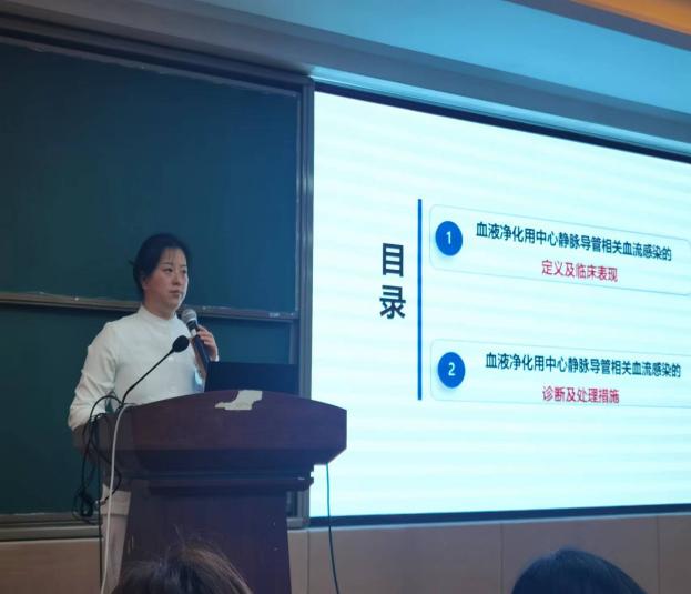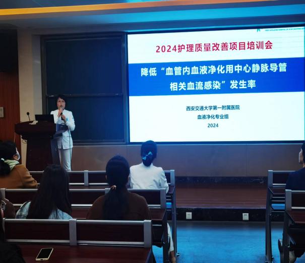 2021年国家卫生健康委首次发布年度国家医疗质量安全改进目标,将“降低血管内导管相关血流感染发生率”作为护理专业年度质控工作改进目标,通过两年的持续改进,PICC和CVC相关血流感染问题得到改善。2024年护理专业年度质控工作改进目标修订为“降低血管内血液净化用中心静脉导管发生率”,重点提出血液净化用中心静脉导管在用途、感染预防措施及要点方面不通气其他导管,需要得到关注。为跟进国家政策,响应护理部号召,血液净化护理专业组经过紧锣密鼓的筹备于3月27日下午在科教楼201如期举办护理质量改善项目培训会,围绕如何降低“血管内血液净化用中心静脉导管相关血流感染”发生率进行专题培训,促进全院血液净化用中心静脉导管规范化和同质化管理。