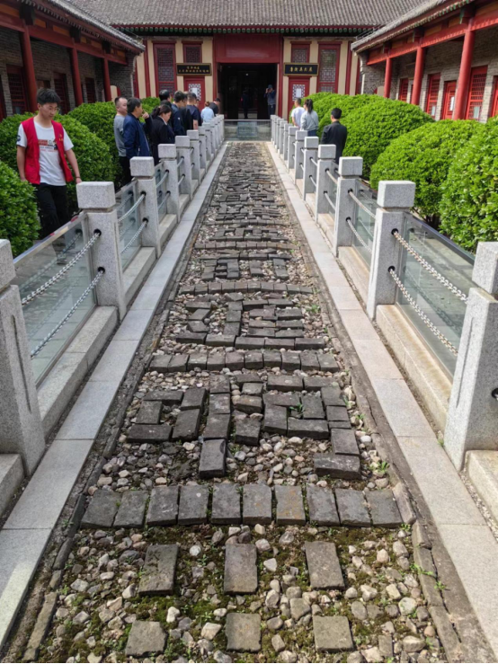 参观过程中最令大家感到震撼的还是那句特殊的标语:“同志们,赶快踏着先烈的鲜血前进啊!”据介绍,这幅标语上原本只有“踏着先烈的鲜血前进啊”这10个字,是当时高塘和谷堆两校的师生1927年为悼念李大钊等烈士,用青砖和鹅卵石铺砌而成。1928年5月,渭华起义爆发后,刘志丹到达这里,发现了这一鼓舞人心的标语,于是就命令警卫员将它重新加以点缀,添加了“同志们,赶快”这五个大字。起义失败后,刘志丹在撤退时,就命令警卫员将它用黄土掩埋起来。一九四九年以后,人们才除去上面的黄土,让这一砖铺标语在渭华大地上重见天日。这句用生命书写的铿锵有力的标语,被誉为镶嵌在渭华大地上的特殊标语,属国家一级革命类文物。