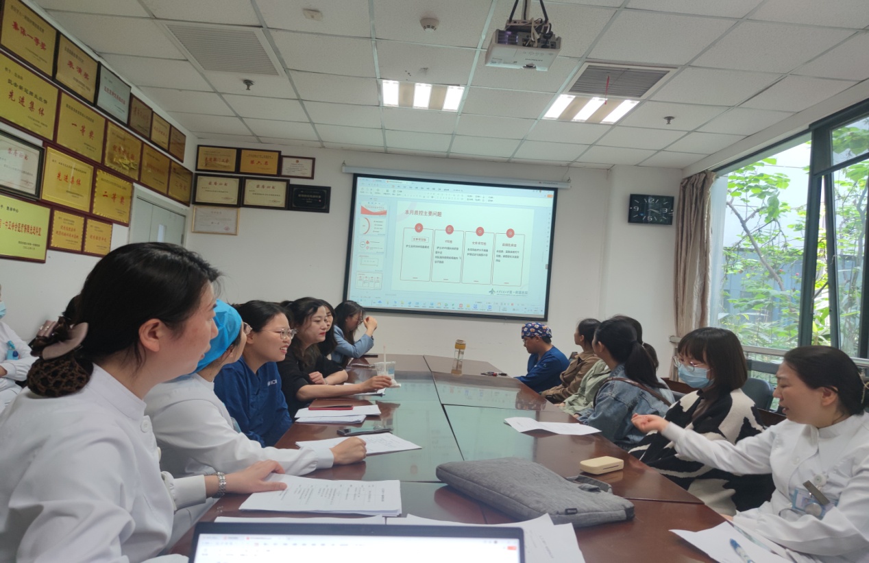 病情观察小组、VTE小组、文件书写小组、跌倒坠床/走失小组等质控小组对此次发现问题进行汇报并提出改进措施。在集体讨论环节,大家对照相关文件要求,结合科室实际畅所欲言,各抒己见。经过气氛热烈的讨论,提出采取案例分析,模拟训练,交接班前相互检查,知识缺乏项目培训,定时集中宣教,进一步明确高危评分项目,细则等改进措施。护士长宋烨在会议结束时作了总结发言,提出要将存在的问题作为下阶段持续改进的重点,每周末对改进情况进行检查总结。并针对科室薄弱环节制定下一步重点工作计划。