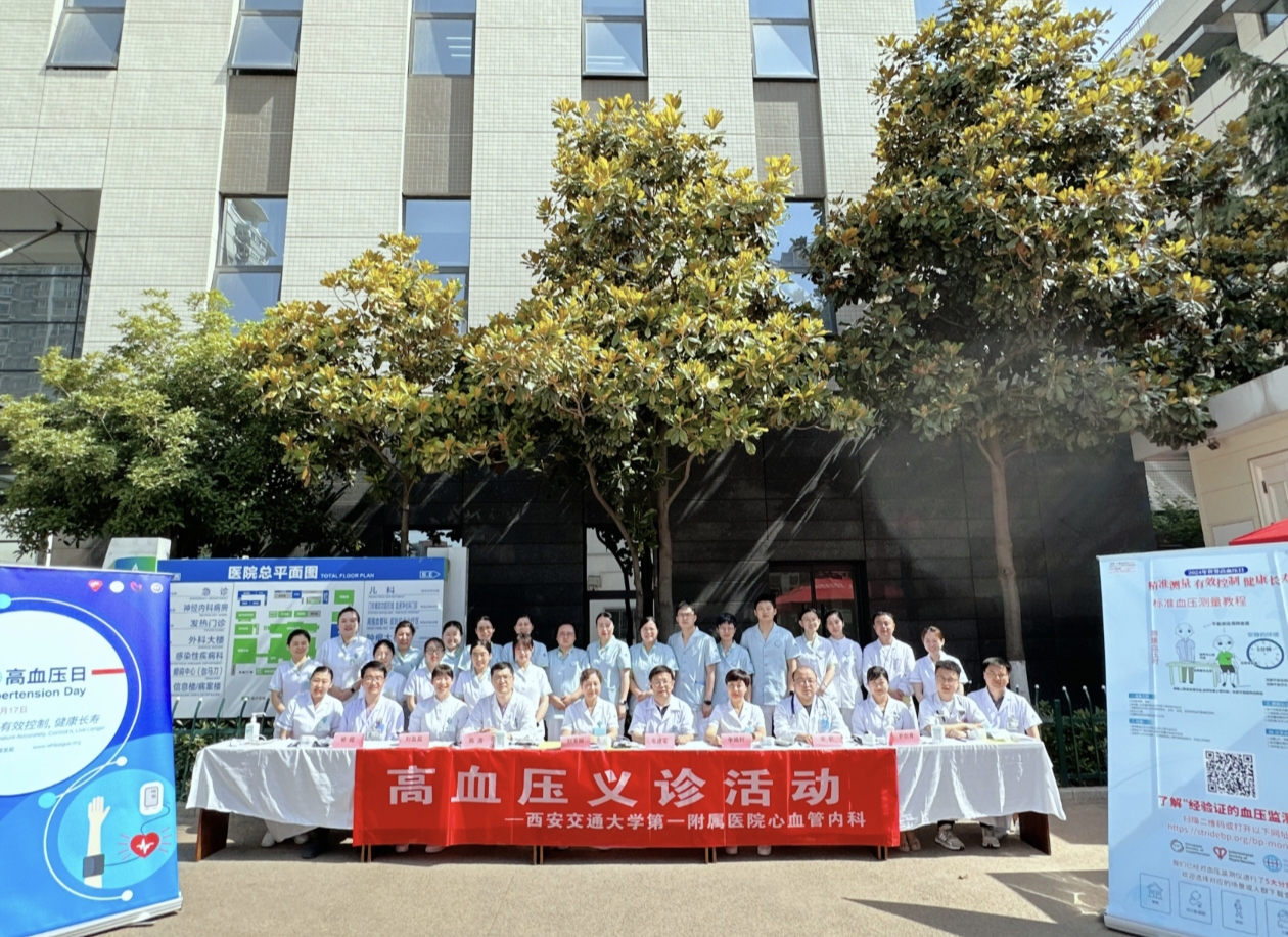值此5月17日“世界高血压日”之际,为促进心血管疾病防治,提高居民健康素养水平,让广大群众了解自身血压水平,自觉防治血压。5月17日上午,我院心血管内科团队在我院门诊楼南广场举办大型义诊活动。本次义诊活动由牟建军教授、陈涛教授和护士长刘美丽等带队,向全院患者和西安市民普及高血压防治知识,解答高血压患者的疑惑并引导患者树立科学正确的高血压医学观念。