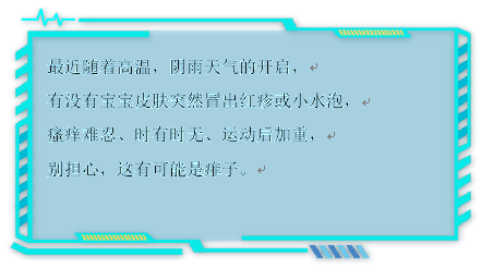 最近随着高温,阴雨天气的开启,有没有宝宝皮肤突然冒出红疹或小水泡,瘙痒难忍、时有时无、运动后加重,别担心,这有可能是痱子。