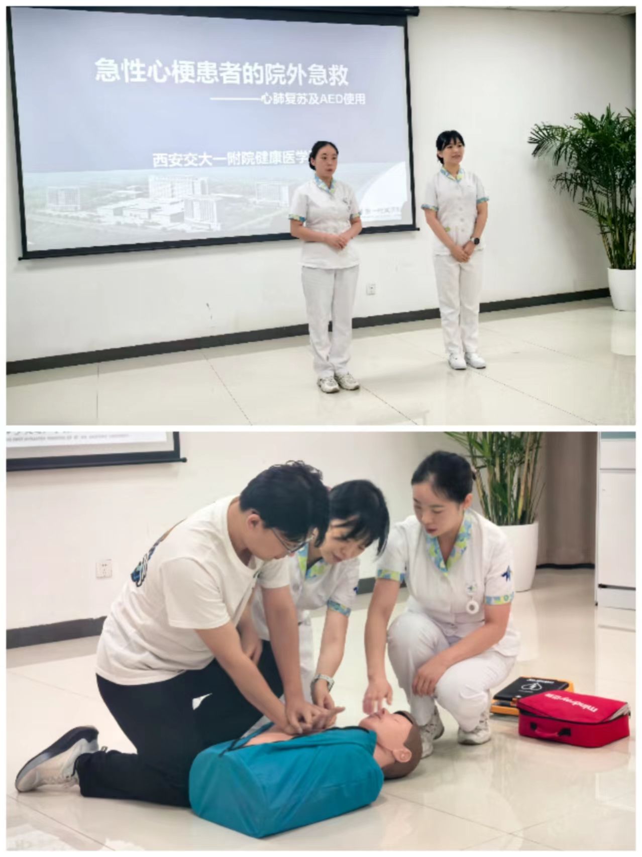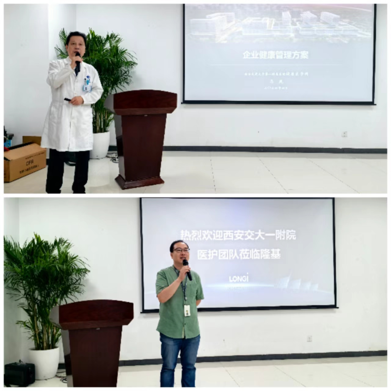 企业安全-健康宣教活动是现代企业重视员工福祉,关注员工身心健康的重要举措。西安交通大学第一附属医院健康医学科长期关注企业健康管理,本着加强企业员工急诊急救技能,提高自我保健意识,促进健康生活方式的宗旨,为了共建医院和企业间的健康管理,西安交通大学第一附属医院健康医学科在主任马茂教授的带领下联合电池制造中心工会与西安隆基乐业工会于2024年7月16日14:00-15:30在隆基绿能科技股份有限公司102阅览室开展了此次健康宣教活动。