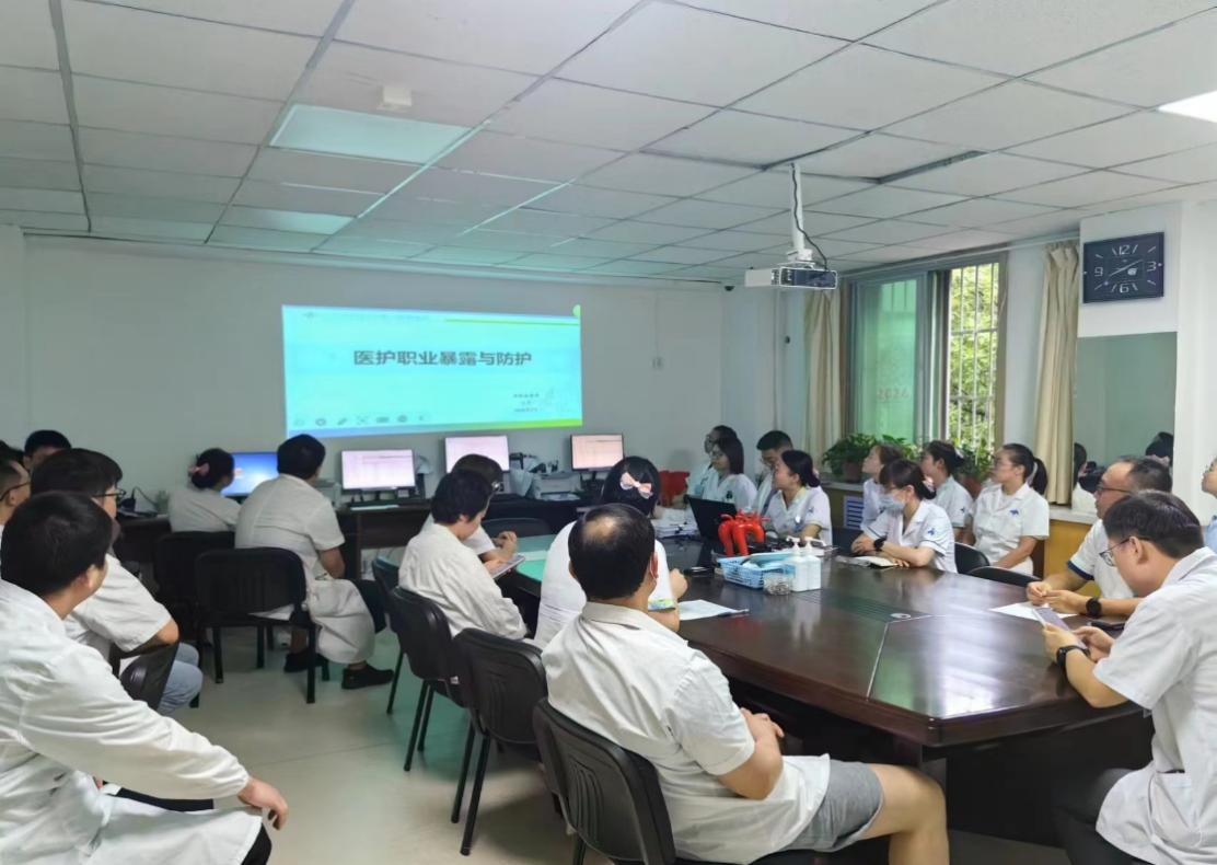 医务人员作为患者健康的守护者,同时他们也面临着职业暴露的风险。为了加强医务人员的职业防护意识,提高应对职业暴露的能力,2024年7月17日晨交班时周围血管科举办了《医务人员职业暴露与防护》的感控专题培训。
