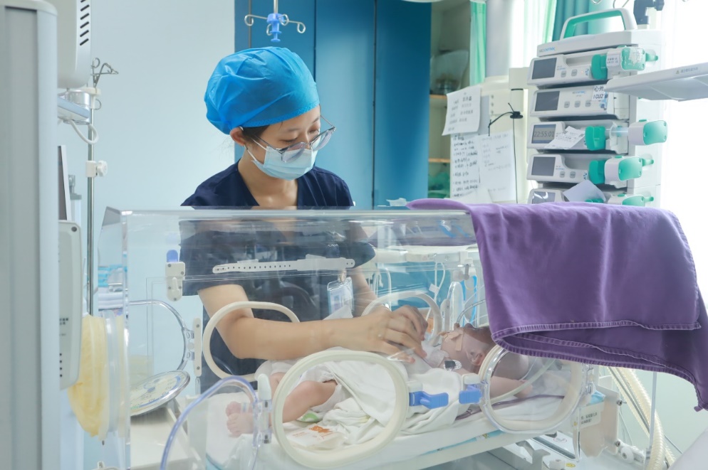 稚嫩的生命如同初升的太阳,充满活力与希望,然而命运却似乎对这个小生命格外严苛。7月16日00点40,科室接到手术室电话通知,有延迟关胸的术后危重患儿转入,心外ICU护理团队第一时间启动了应急接诊流程,床单元空气消毒、呼吸机管路安装及调试,血管活性药准备……在团队的密切配合下,患儿在最短时间内从手术室被平稳接入心外ICU监护。出生不到10天的她身上插着CVC置管、呼吸机管路、胃管、引流管等多根维系生命的重要管路,小小的她让人不由得心生怜惜,生命竟是如此的脆弱而坚强。像她一样的先天性心脏病患儿还有许多,这些患儿病情危重复杂,喂养困难、抵抗力差,易感染……护理难度大,风险高。但心外ICU护理团队凭借高度的责任心和技术,高质量完成每日的护理工作,包括每日暖箱消毒管理、术后患儿引流监测、脐带消毒、配方奶粉喂养方式、液体容量管理、电解质监测……同时也邀请了新生儿科会诊,共同制定患儿营养计划,事无巨细,将重点难点护理问题进行不断细化,一切只为了患儿能平稳度过监护期,早日康复!7月19日中午,在心外监护团队的紧密配合下,患儿顺利关胸,术后生命体征平稳,目前只能正在接收后续的康复治疗。心外ICU护理团队,用满满的爱心,精湛的技术日夜悉心守护,护佑脆弱的新生命穿过疾病的迷障,为折翼的天使插上强壮的翅膀,助力他们早日回到家庭的怀抱!