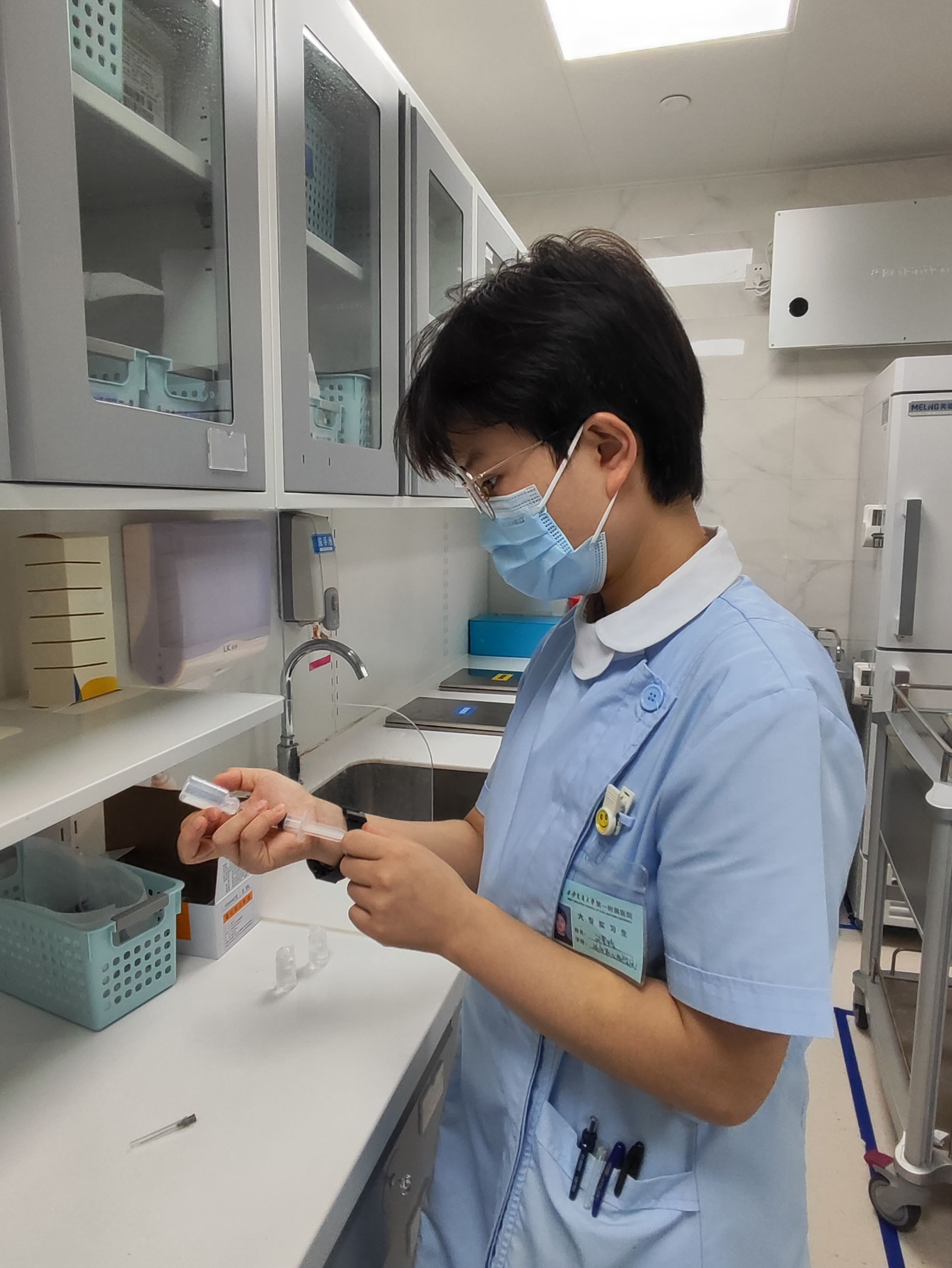 第一天来到科室,面对新面孔,新环境,看着来来往往的病人,仪器的嘈杂声,让我很迷茫。不过还好,总带教张丹丹老师及时带我们了解了病区,熟悉了环境,介绍了各位带教老师,了解了物品摆放及各种仪器的使用和各种规章制度,我们也对科室有了进一步的了解。