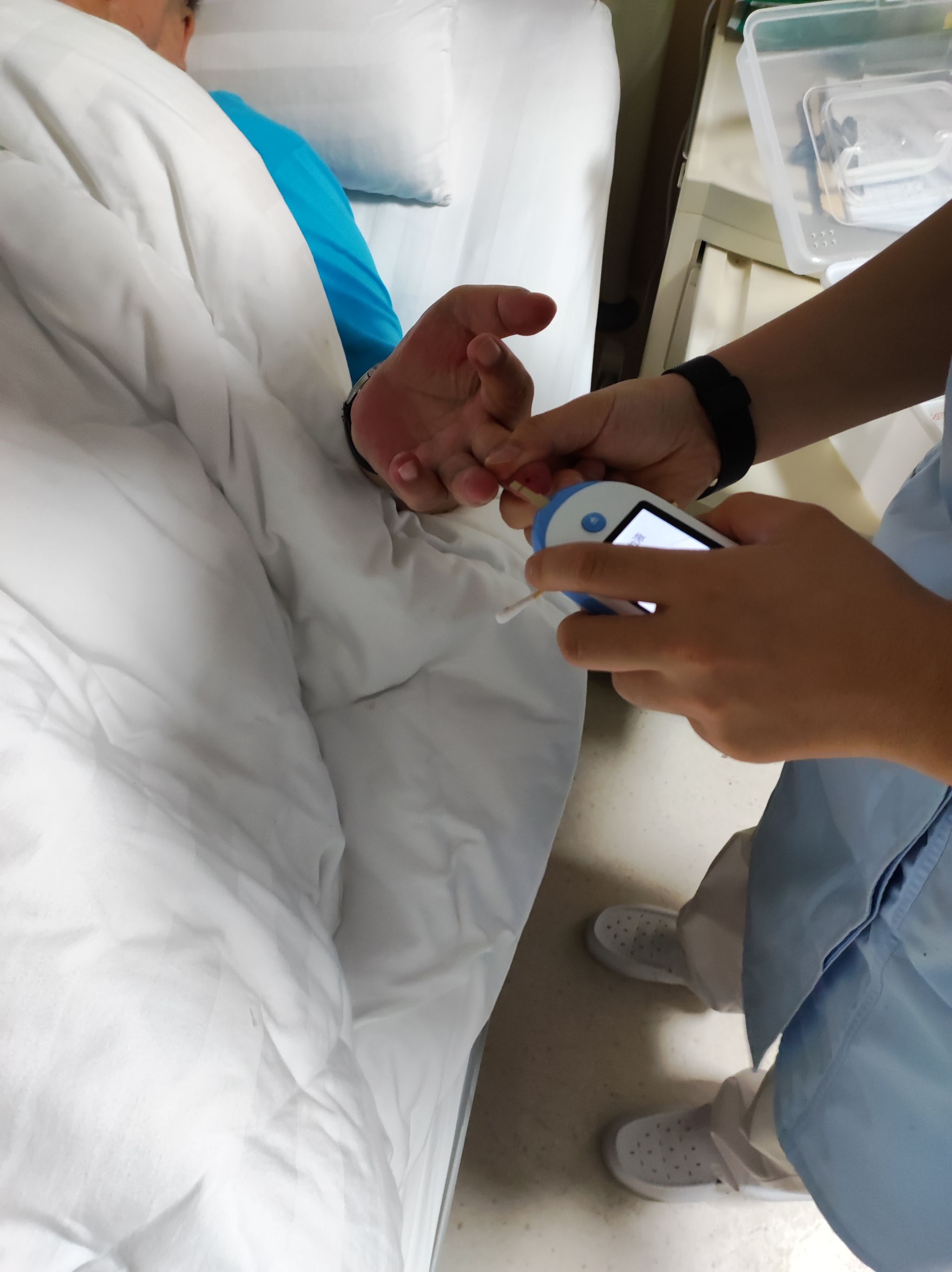 老年内一科不同于其他科室,在这里几乎都是一些老年患者,以高血压、糖尿病、冠心病多见。由于科室的特殊性,病人的血管及皮肤弹性都不是很好,记得有一天早上跟带教老师去打针输液,老师就让我看血管,当时又紧张又窃喜,紧张是怕穿刺不成功,窃喜的是老师对我的信任。还好在老师的鼓励下,第一次穿刺成功了,当时我很开心,老师也夸赞我,鼓励我,还说我刚刚操作的很好,要相信自己,加油。从那次我也对自己更加有信心,给自己加油打气,不断学习虚心听老师讲解。让我最为记忆深刻的就是张蕾带教老师,她真的是一个非常有责任心的老师,跟她在一起每天有学不完的东西,她教会了我很多,随时都会问我一些基本知识,也会让我上手操作,比如静脉采血、静脉输液、胰岛素注射、雾化及氧气吸入、测血糖等等。她十分认真地教我各种各样的本领,让我切切实实感受到了榜样的力量。在各位老师的带教下我基本掌握了一些常见的护理及基本操作,按时参加科室的小讲课,每天交接班,按时完成老师们布置的作业,微笑迎接新病人并在老师的带教下完成入课宣教,严密监测生命体征并规范记录,严格执行查对制度。在实习过程中,我严格遵守医院制度,认真工作,严格要求自己,团结同学,关心病人,努力做到护理规范化,技能优质化,将理论和实践相结合,为患者提供更好的护理。