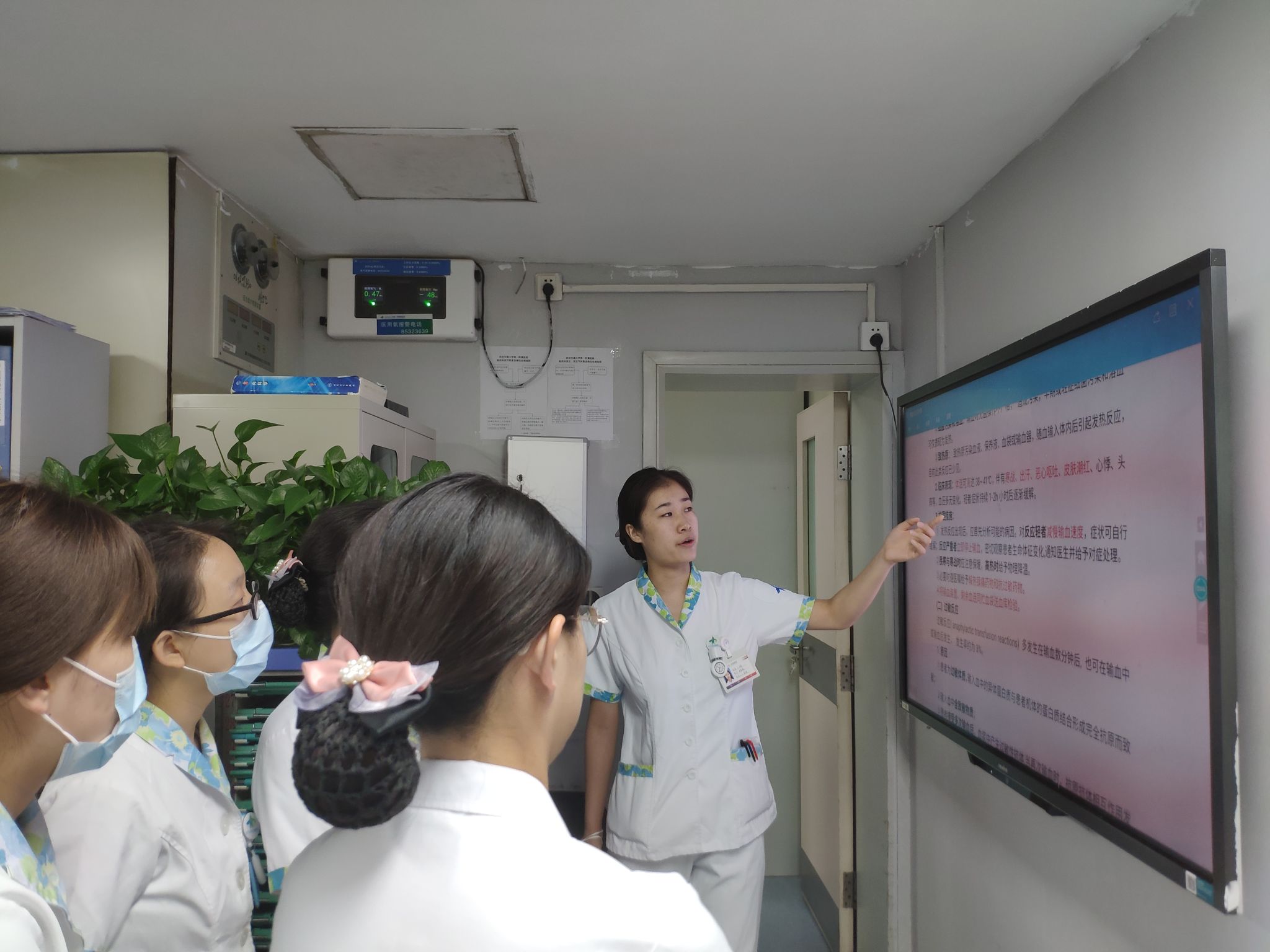 2024年8月29日,心内3病区规培护士李雪艳利用晨交班时间,组织全科护士学习输血反应及其处理的知识。此次学习由宋来玲护士长主持。