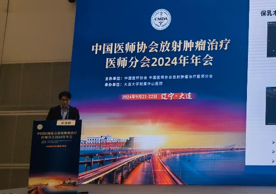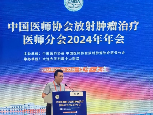 肿瘤放疗科副主任李毅在2024年中国医师协会放射肿瘤治疗医师分会年会上做专题汇报《X/γ射线时空放疗创新理念与技术探索》,首次就X/γ一体化放疗设备(TAICHI)的创新设备结构、特色功能、射束特性,X/γ双头计划制作和X/γ双头计划剂量学优势做专题汇报。