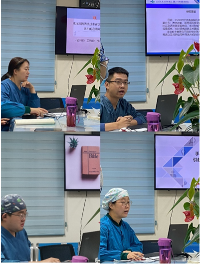 紧接着便是各小组的课题展示环节。按照之前任务的安排,以“结对子”的形式将科研小组内的成员进行了分组,每个小组分别将自己的科研课题以PPT的形式展示出来。由于是首次开展培训活动,内容主要涉及选题背景、科研目的、科研方法及科研设计等基本内容。在分享的同时各小组也将选题过程中所遇到的问题提了出来与大家一同探讨。众人拾柴火焰高,经过大家激烈的讨论许多问题很快迎刃而解。