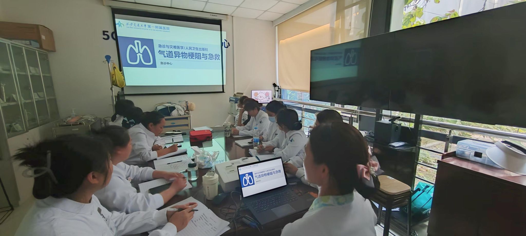 急诊中心不仅安排了专人带教,科室领导们高度重视,杜俊凯主任和李敏玲护士长还定期通过多种方式了解我们的学习需求,并为我们精心安排了合理化的课程。在每周五培训后,急诊护士长会组织座谈会,了解我们的想法。对于撰写病例汇报,由于本身缺乏临床经验,因此这对于我来说也是一次具有挑战性的作业。在刚开始,我一头雾水,但带教老师主动给我们提供了病例模版用于借鉴学习,安排授课老师们详细耐心的讲解和指导,给予了我很大的支持和帮助。其次,急诊中心的科普“周周讲”急救技能也让我大开眼界,坚持一项公益培训项目需要付出更多的时间和精力去影响身边的每一位人去学习急救技术、掌握急救技术依然任重道远。