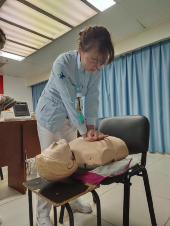 其二为 BL(Based Learning)阶段。郭盼玲护师分五步讲解心肺复苏、除颤、呼吸气囊操作技能。心肺复苏涵盖 C 心外按压(位置精准、深度适宜、频率恰当)、A 开放气道(仰头抬颌法)、B 人工呼吸(频率、手法);除颤涉及其原理、模式选择、能量把控、位置准确、皮肤判断、放电注意事项以及除颤仪保养等内容;呼吸气囊包含原理阐释、构造解析、检测方法、EC 手法运用以及呼吸气囊消毒之法。通俗易懂的讲解,搭配标准娴熟的操作示范,迅速赢得了学员们的高度认可。