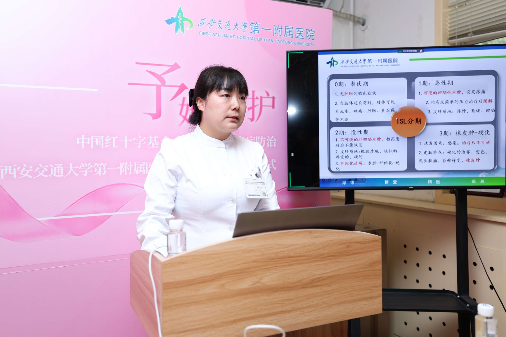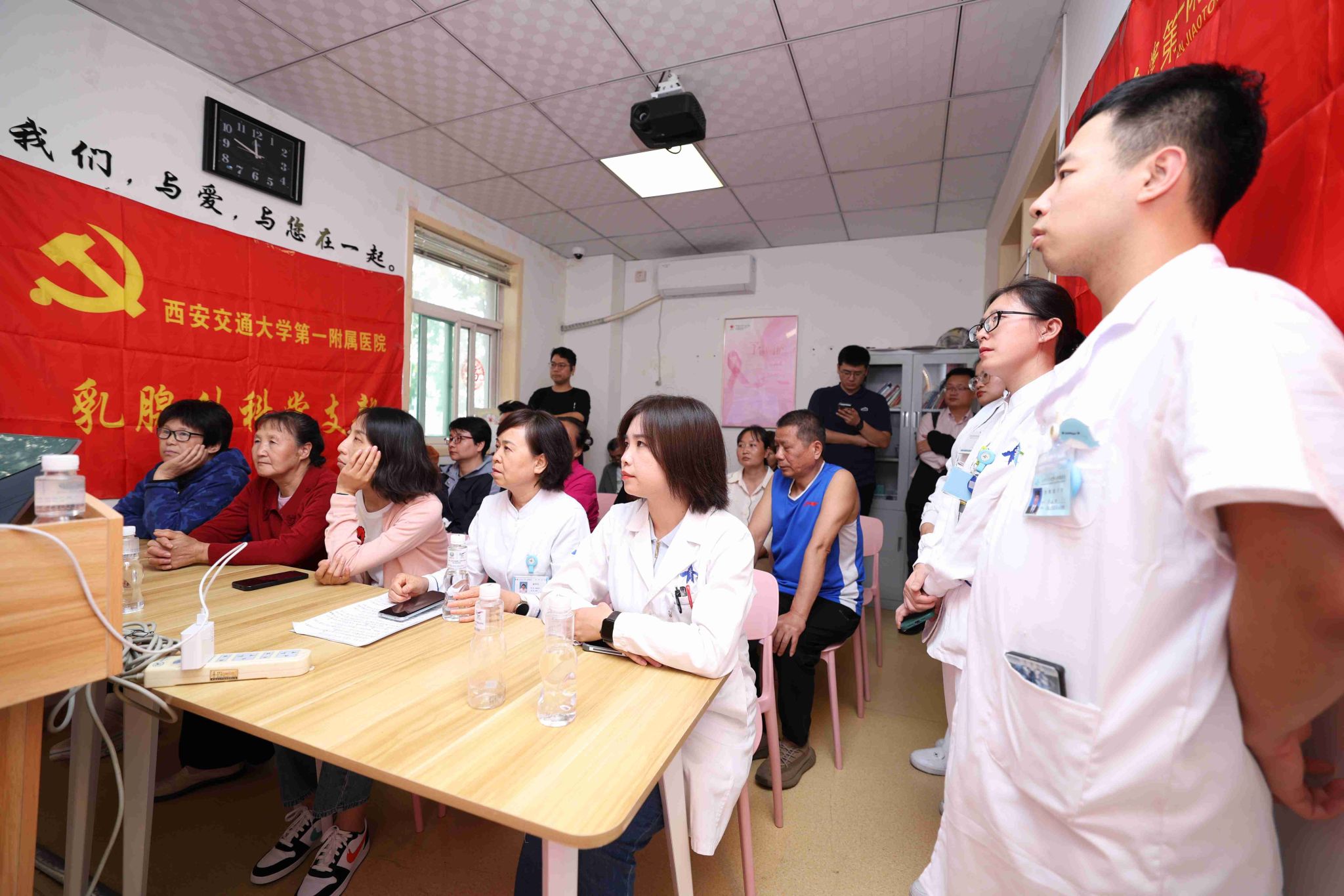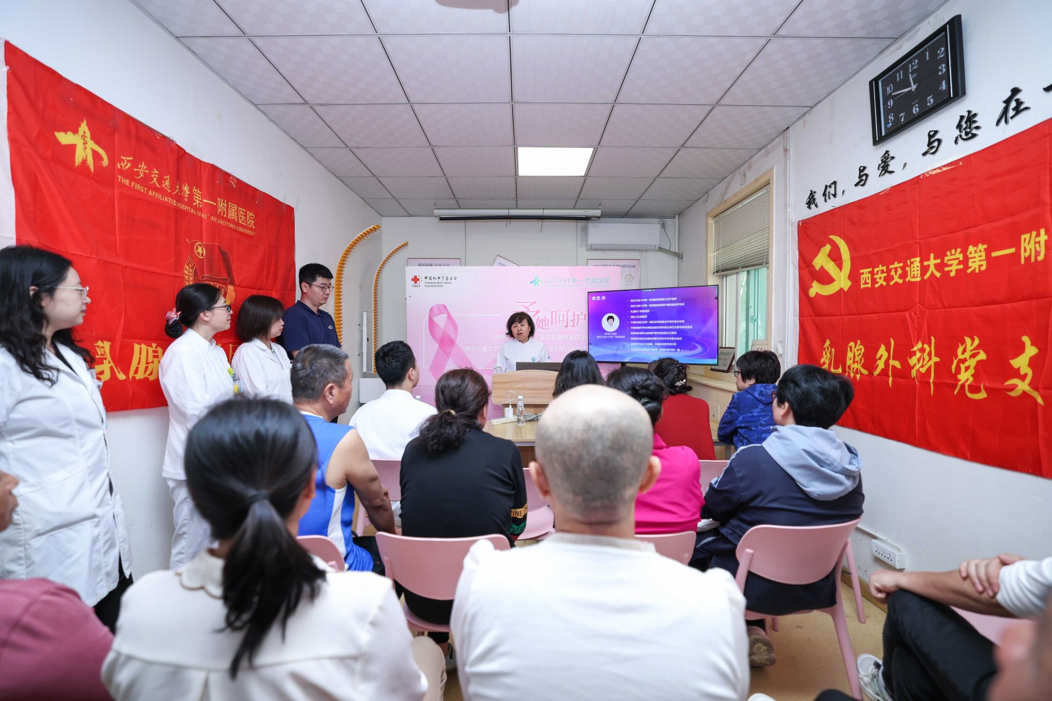 为深入普及乳腺癌防治知识,提升公众健康意识与素养,2024年10月14日下午,一场由西安交通大学第一附属医院乳腺外科党支部、团支部及工会联合承办的乳腺癌科普宣教活动在乳腺外科康复室成功举办。本次活动由中国抗癌协会个案管理专业委员会荣誉主办,并得到了多个权威协会与学会的鼎力支持。活动采取线上直播与线下互动并行的模式,成功跨越地域界限,吸引了乳腺癌患者群体及广大健康关注者的广泛参与。