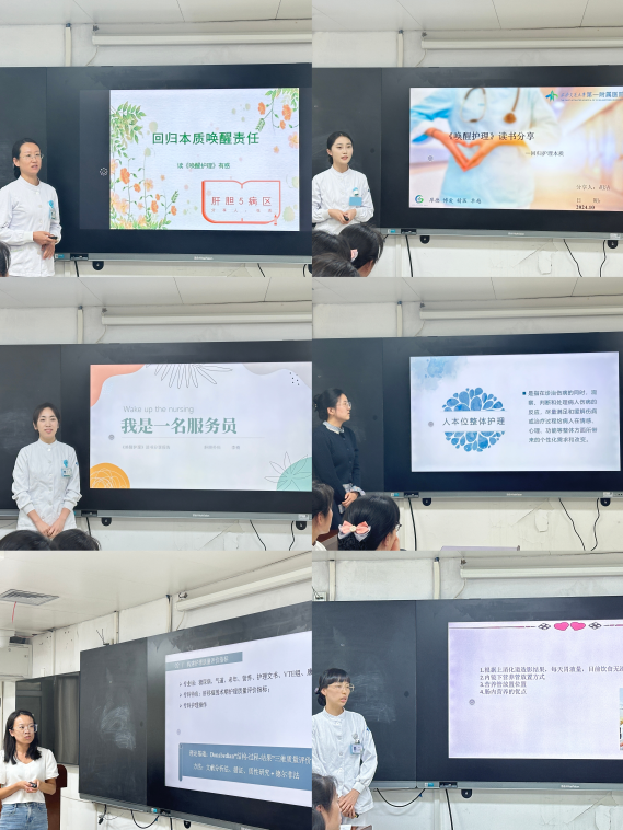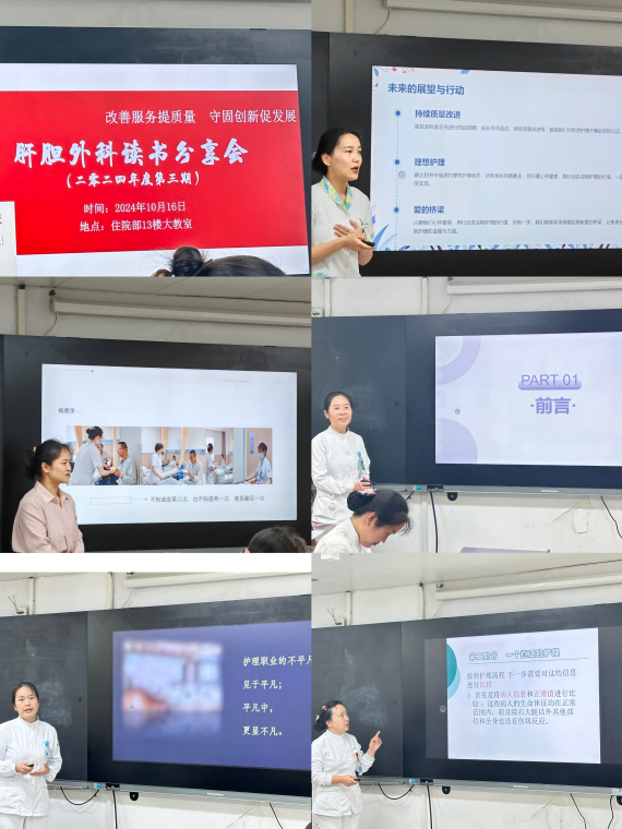 为了进一步强化医学人文关怀,促进医患沟通,构建和谐的医患关系,提升患者就医的获得感与满意度,肝胆外科积极号召全体护理人员阅读张中南教授所著的《唤醒护理》一书,并于2024年10月16日在住院部13楼中间教室举办了第三期《唤醒护理》读书分享会。