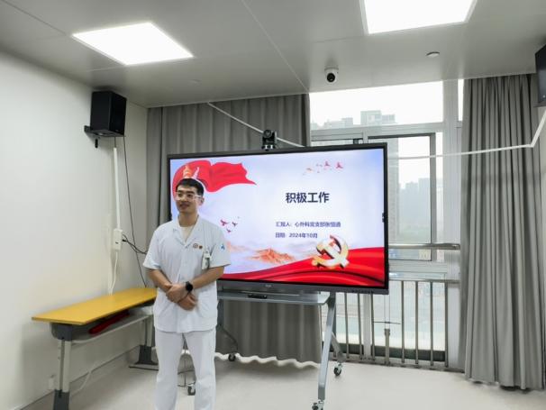 随后,各党员同志结合自身的工作做了体会分享,刘淼淼同志表示,在科室的发展取得进步的同时,每一位党员同志应砥砺前行,带着心外科的精神,不断努力、创造更卓越的成绩。刘倩同志表示,随着科室医疗、护理技术的发展,在行业取得了较高的声誉,吸引了全国各地上百名学员前来学习,大家应当凝心聚力、弘扬心外精神,发挥行业模范作用。王皓冬同志表示,自己身为ICU护士,熟练掌握CRRT技术,看到通过精心护理的患者转危为安,内心感到骄傲,认识到了自身的社会价值,坚定了自己的信念。