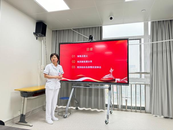 首先,王娟同志介绍了本次组织生活会议的主题、学习的背景及意义。她指出,今年是新中国成立75周年,是实施“十四五”目标任务冲刺之年,也是国家医学中心建设关键之年,我们要激励全院党员弘扬红色精神、激发干事动力,凝心聚力推动医院高质量发展,发挥好党员模范作用,不断创新技术,促进学科发展,保障患者安全,为医院、科室发展做贡献。