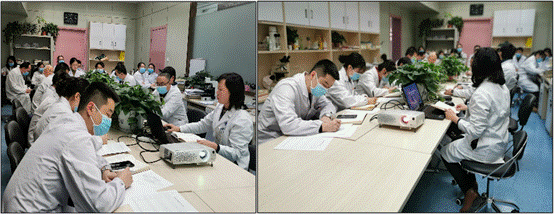 会议的最后一项内容是全体党员进行个人党性分析。首先,王鸿雁书记带头做了发言,结合自己所担任的党支部书记职务进行了深入细致的分析,并指出在以后的工作中要多借鉴优秀支部的创新模式和具体工作形式。接下来,资深老党员张学斌教授做了深刻的发言。张教授首先高度肯定了党支部这一年来的努力和成绩,结合当前的发展形式以及科室的现状为我们抛砖引玉地指出了目前所面临的问题以及未来还需努力的方向,并对自己进行了深入的党性分析,使大家感受之深刻。在聆听了张学斌教授的发言之后,任予教授表达了对老教授的敬仰之情,并结合抗击疫情工作赞扬了我们党在大灾大难面前给中国人民递交了一份满意的答卷。接下来,科室主任张冠军教授结合自己的行政职责对自己做了深刻的剖析,并赞扬支部工作成绩突出,尤其是在科室文化建设方面给予了高度肯定。在谈到科室发展所存在的问题方面,张主任鼓励大家要在困难中寻求平衡,积极探索解决问题的实际方法,为促进科室的发展同舟共济、齐心协力。参会全体党员提前认真准备,积极发言,下乡的蒋依娜同志递交了自己的个人分析报告,大家从自身出发、结合实际工作、立足本职岗位,从多角度、多方面做了深刻的发言和深入的剖析,群众代表也积极主动发言,并进行了互评。会议进行了2个半小时。