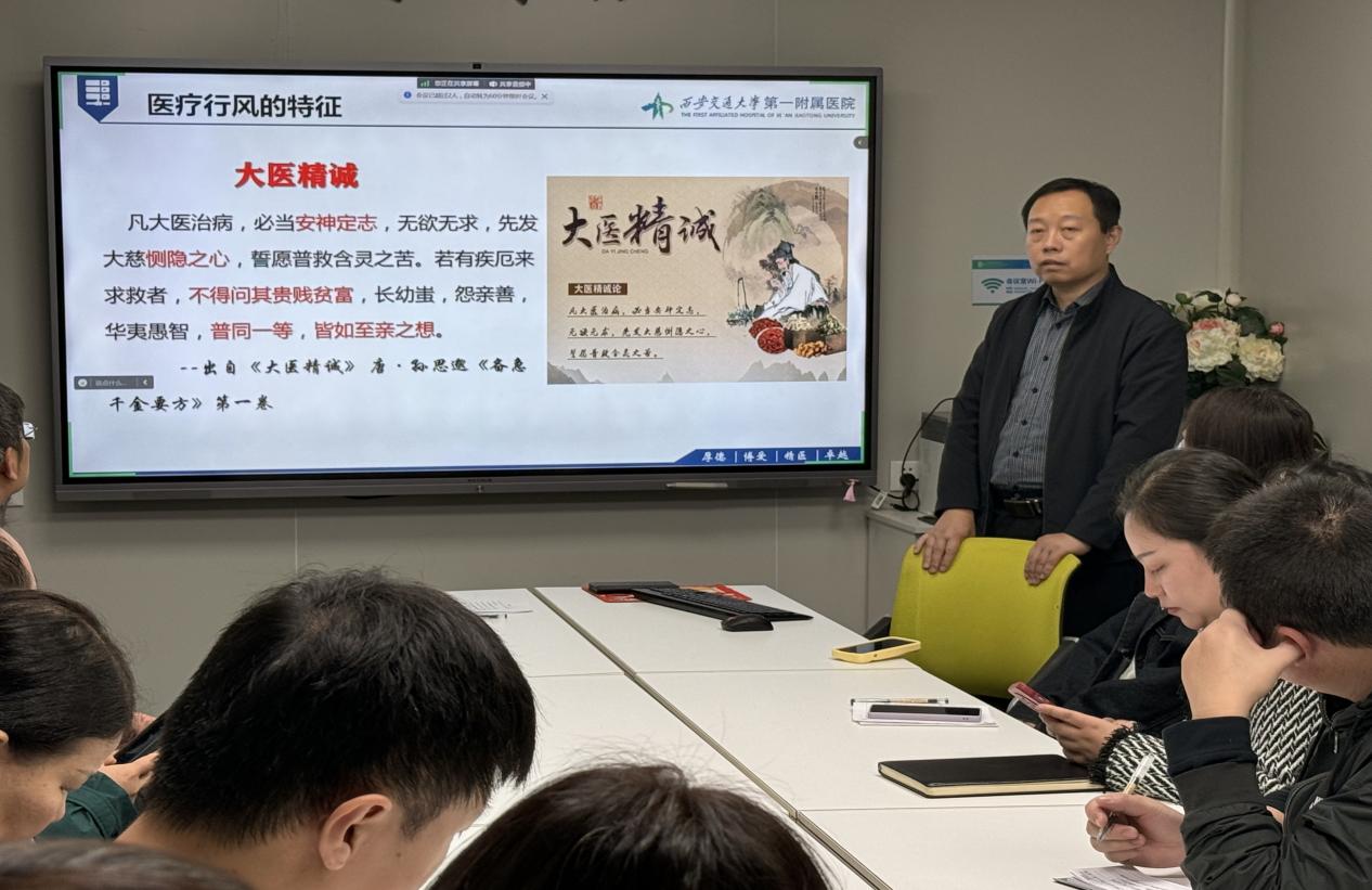 为充分发挥党建引领作用,增强党组织的向心力和战斗力,按照医院党委统一部署,推进党建和业务的深度融合,促进支部的学习交流,医务部党支部组织召开行政职能科室业务分享大讲堂系列讲座,意在搭建不同行政职能科室之间工作沟通的桥梁;本次讲座隆重邀请了行风建设办公室主任罗俊作“持续强化行风建设引领医院高质量发展”的主题分享,会议由医务部副部长、党支部书记叶峰主持,医务部全体人员参会。