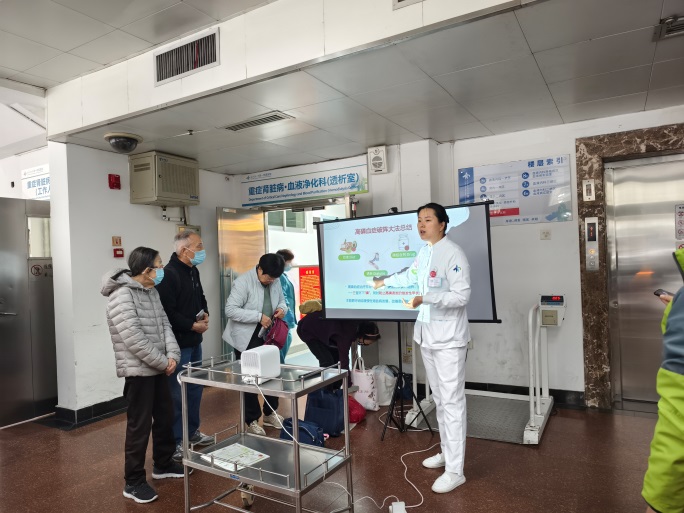 湖田十月清霜堕,晚稻初香蟹如虎。重症肾脏病·血液净化科作为守护血透肾友健康的坚强后盾,深知健康教育的重要性,从“预防胜于治疗”的理念普及,到慢性病管理的科学方法,再到心理健康的自我调适,每月医护们都用通俗易懂的语言,将深奥的医学知识化为生活中的点滴智慧。10月26日,“关爱透析月月讲”健康教育的宣讲专题是关于慢性肾脏病并发高磷血症的知识科普,旨在为血液透析患者及家属普及高磷血症预防知识,增强血透患者自我管理意识,改善透析质量,减少高磷血症远期并发症,提高血透患者的生活幸福指数。