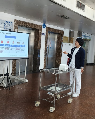 此次活动首先由王茹主管护师从专业角度为大家科普《高磷血症的成因及影响》,以“什么是磷”开始讲解引入到为什么尿毒症患者会发生高磷血症,血磷升高有哪些危害,如何识别高磷血症以及控制血磷在正常范围有何益处等。王茹护士着重讲解了高磷血症的危害,使患者认识到在日常饮食中控制磷摄入的重要性。