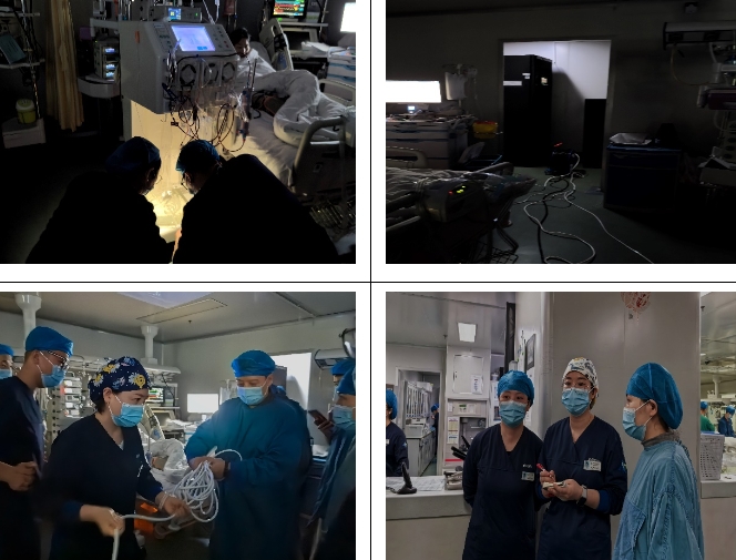 上午9时,随着总指挥赵璇副护士长的一声令下,演练正式开始。模拟场景中,所有床位吊塔突然断电,监护室内陷入黑暗,临床组长立即大声呼叫,主班老师拨打总务部电话,告知科室具体位置及情况,并通知刘红娟书记。各管床护士打开应急电源,并立即断开呼吸机,给予患者简易呼吸器辅助通气。病房共计11人进行CRRT治疗,紧急给予手动回血下机。总务班老师引导总务部工作人员到配电室查找原因,并快速连接插线板,确保呼吸机、监护仪等重要医疗设备尽早正常运行,维持患者生命体征稳定。临床组长随时将病房情况向护士长进行汇报。