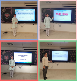 来自老年内二科、骨科、感染科、胸外科、肝胆外科、眼科及内分泌代谢科的8位专科护士通过图文并茂的PPT从个人简介、学习收获、开展工作情况、存在不足及明年的工作计划五个方面进行汇报。各位老师对总结工作的准备非常充分,总结内容精辟独到。
