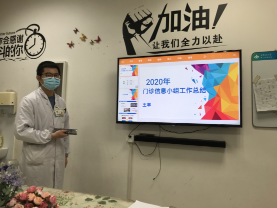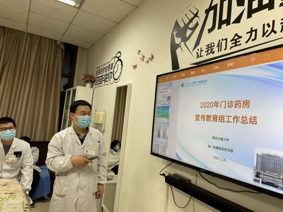 接着,杨文超组长向大家传递了医院例会和药学部例会的精神,门诊药房四个小组汇报2020年度工作。绩效考核小组梁丽药师介绍了门诊药房的运行情况以及绩效分配制度,质量安全小组张文娟药师介绍了急救柜药品管理,近效期药品管理等工作,保障用药安全,减少药品浪费。宣传教育组李鹏飞药师介绍了全年参观,药学科普,员工继续教育,合理用药培训,处方点评等情况。信息网络小组王丰药师介绍了门诊药房智能化设备升级情况,药房管理软件优化情况,提高调剂效率。还升级了拆零药品的包药设备,从程序上职工优先取药,以及智慧好医院线上处方分流方案等。