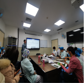 杨阳医生告诉大家CRRT临床应用目标是清除患者体内过多水分,清除体内代谢、毒物等,纠正水电解质紊乱,维持内环境稳定,根据我科病人特点,CVVHDF模式是最常用的模式。他着重强调CRRT的抗凝以及相关参数的设置,并对CRRT的封管也做了详细的介绍及规定,要求人人心中有数,人人知晓。培训结束后大家就护理CRRT患者出现的问题进行了提问与讨论。此次的培训让大家对CRRT治疗有了一个更全面的了解,掌握了血液净化治疗的基础理论知识,能够及时、有效的处理机器的各种状况。