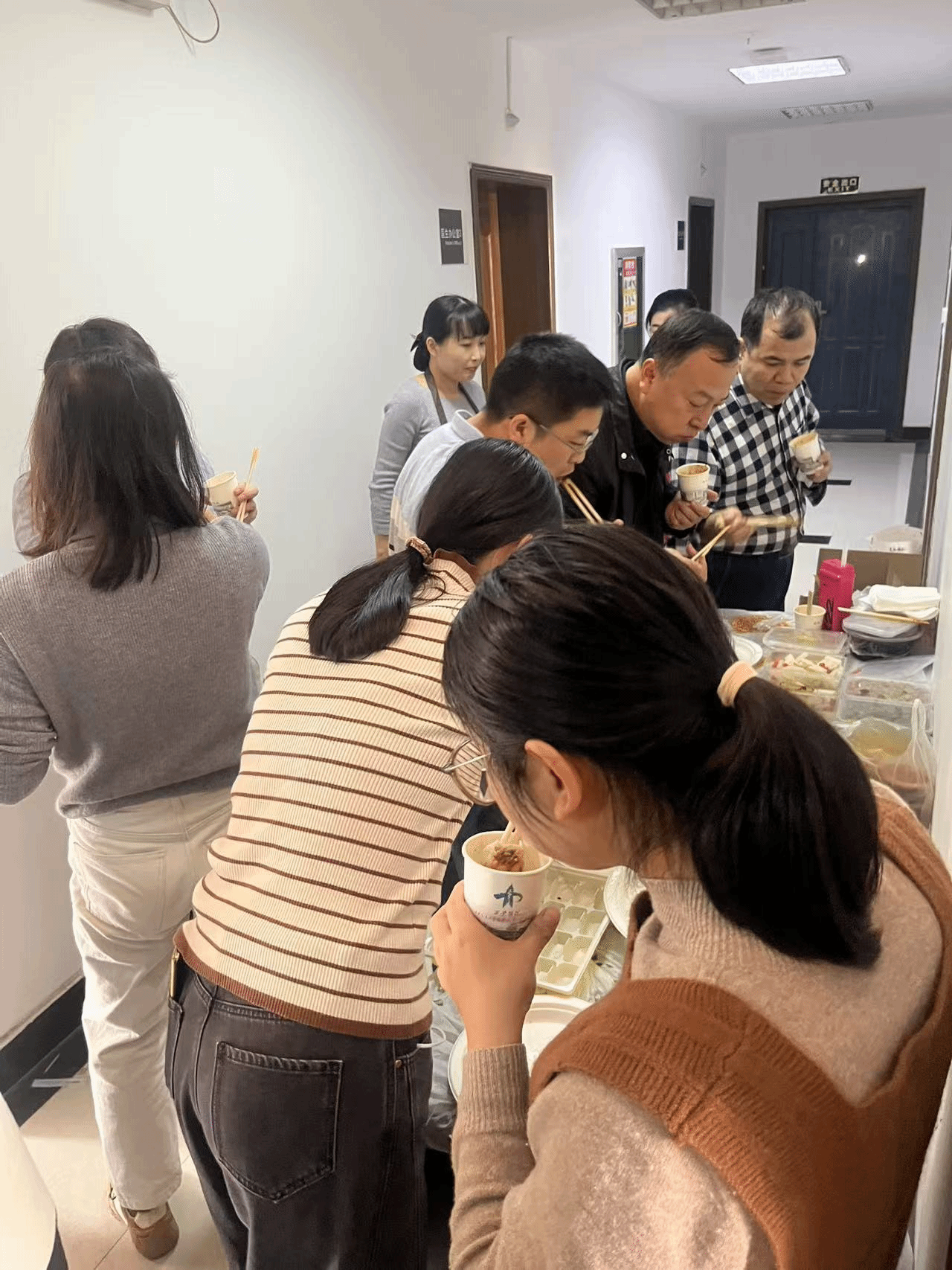 随着一盘盘热腾腾的饺子出锅,大家围在一起,品尝着自己亲手包的饺子,感受着节日的温馨与快乐。在品尝美食的同时,老师们还畅谈工作、生活趣事,彼此之间的距离进一步拉近。饺子虽小,却饱含着科室对职工的关爱,也承载着老师们对科室这个大家庭的深厚情感。在这一刻,所有的疲惫都被抛诸脑后,留下的只有浓浓的温情和深深的感动。