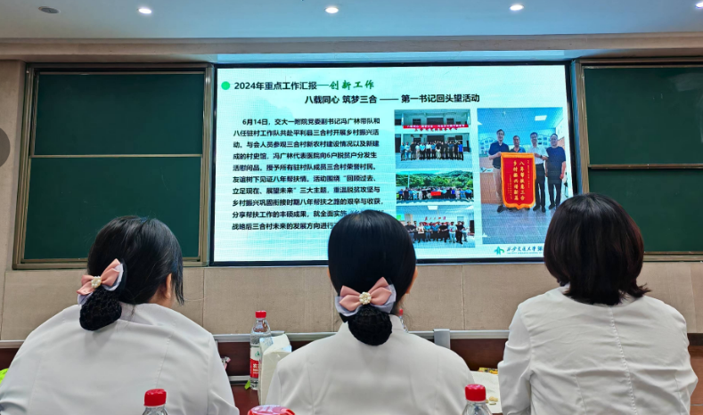 此外,科室驻村干部易瑞林通过线上播放视频的方式展示了这一年乡村振兴的工作。他带我们走进了一个不一样的环境,生动的为我们介绍交大一附院驻村干部的工作情况。从强化党建,引领乡村振兴、产业赋能,激发经济活力、改善民生,夯实发展基础等方面一一讲解,为我们展示了一个充满活力的美丽乡村,展示了交大一附院人助力乡村振兴的工作印记。