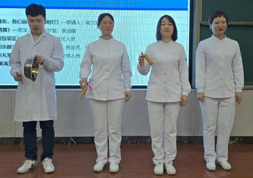 文艺汇演在三句半节目《去污乐翻天》中拉开了序幕,四位老师用简练的语言为大家展现出了工作时的情况,节目清新脱俗,营造了现场欢快的氛围;舞蹈节目《惊鸿舞》为我们展现出了古典美,这两位老师以精湛的舞技将这支古典舞蹈演绎的如诗如画,令人如痴如醉,让我们感受到了飘逸若仙、灵动如风的韵味;王巧娟和刘新艳两位老师带来的歌曲唱进了大家的心扉,使大家热情高涨;节目《大话包装区》富有创意,为我们展现了工作时的点点滴滴,也展现出了科室老师们积极向上的风貌;此外,朗诵节目《毛泽东,我们前行路上的明灯》和《岁末礼赞》充满意境,富有感情的诗歌朗诵带给人荡气回肠的感受。最后,大合唱《小美满》使全场气氛达到了高潮,在全体科务会成员的带领下,老师们全体起立,纵情歌唱,在欢声笑语间大会落下了帷幕。