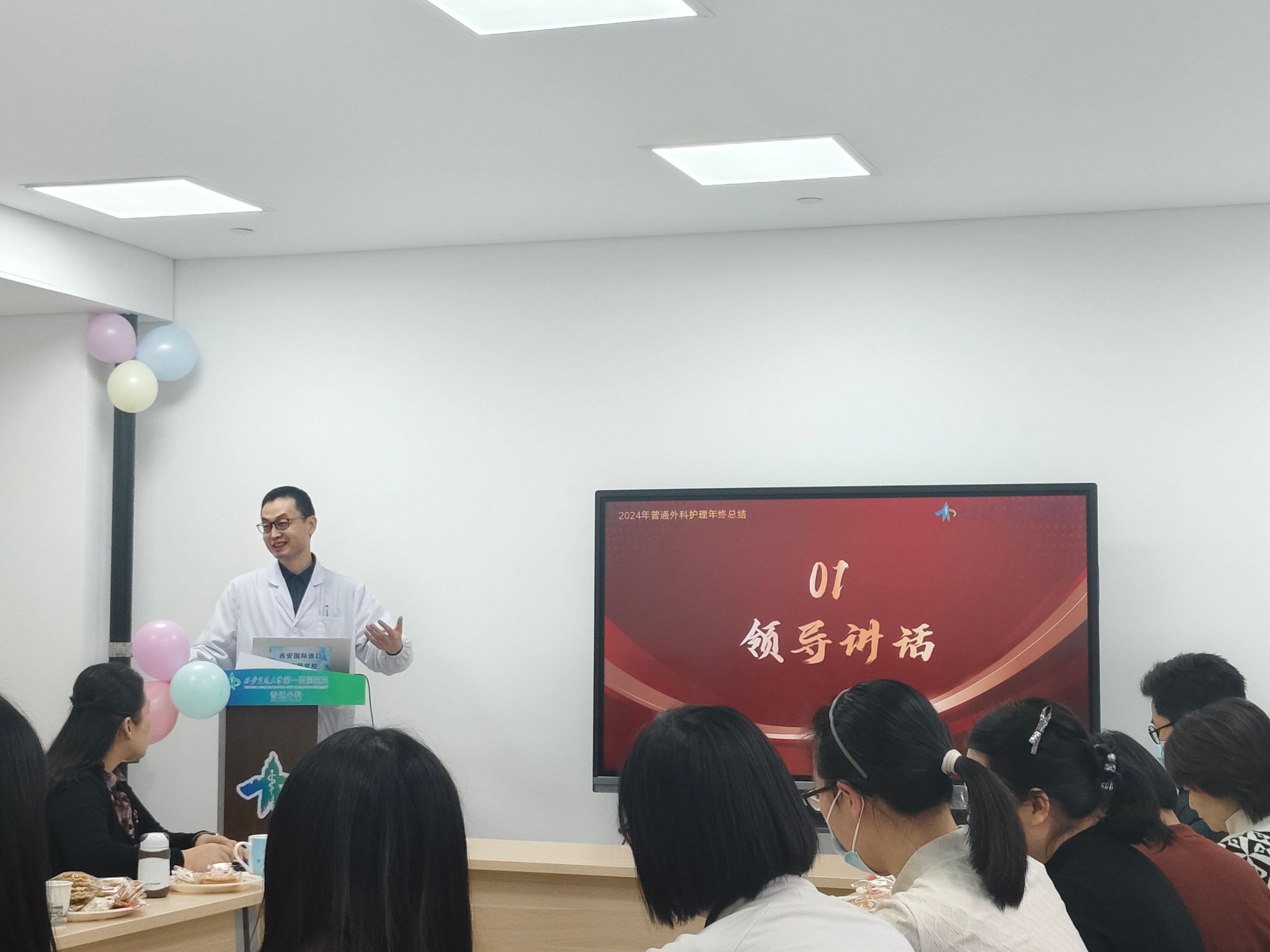 冬至阳生,岁回律转。12月22日,在这个寒梅初绽、年味渐浓的节气里,在院工会的支持下,普通外科工会与科室成员精心筹办了以“品饺子,话团圆,共发展”为主题的冬至活动暨护理年终总结会。大家齐聚一堂为岁末添彩,在欢声笑语中回顾过去一年的辛勤耕耘,展望未来的新篇章,拉开了“总结2024,奋进2025”的序幕。科室孙学军主任、王曙逢副主任、樊林副主任分别致辞讲话,对护理工作给予了充分的肯定,对大家的辛勤付出表示感谢,鼓励护理团队在新的一年继续努力,取得更好的成绩。