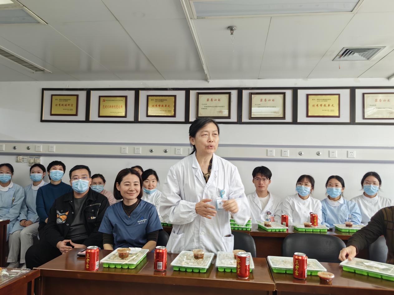 活动现场还准备了节日小食和饮品,冯思芳护士长主持本次活动,李满祥主任在致辞中讲到:冬至吃饺子活动是我们科特色传统活动,首先感谢为科室辛苦付出的所有同事、规培医生、进修医生及实习同学,24年在大家共同努力下科室在医教研方面取得的不错成绩,希望大家团结一心,共创辉煌。朱柏书记在讲话中提到,呼吸科工会、党团支部一定为大家做好服务,让大家在辛勤工作的同时,感到浓浓的节日气息和家一般的温暖,不仅因为饺子美味,更因为这份团圆的情感。通过这样的活动,我们希望能够缓解工作中的压力,增进同事之间的交流与合作。