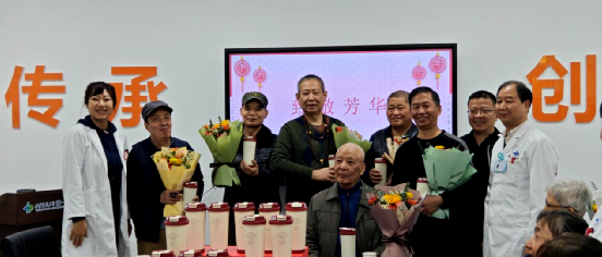 会上,科室党政工团联合为退休职工赠送了退休纪念品,对退休职工几十载如一日、辛勤付出的工作精神表达了由衷的钦佩和感谢。传承是根,创新是叶,核医学新一代青年职工向退休职工赠予鲜花,以表达对他们的感谢和敬意。核医学科向来以“传承·创新”为号召,使新老职工之间形成一种有机的衔接和延续,新一代职工要尊重前辈职工的功勋和贡献,继承延续他们的优良工作习惯,也要积极学习和接纳新的理念和方法,为科室的发展注入新的活力。