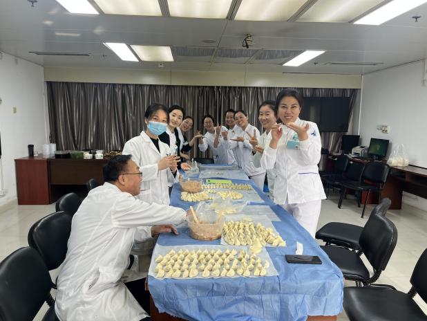 当一盘盘热气腾腾的饺子出锅,大家围坐一起分享劳动成果,脸上洋溢着满足的笑容。这美味的饺子饱含着医护人员对彼此的关爱,也象征着泌尿外科团结协作的精神。未来,他们将带着这份温暖与团结,继续为患者提供优质的医疗服务,携手书写科室更加美好的篇章。
