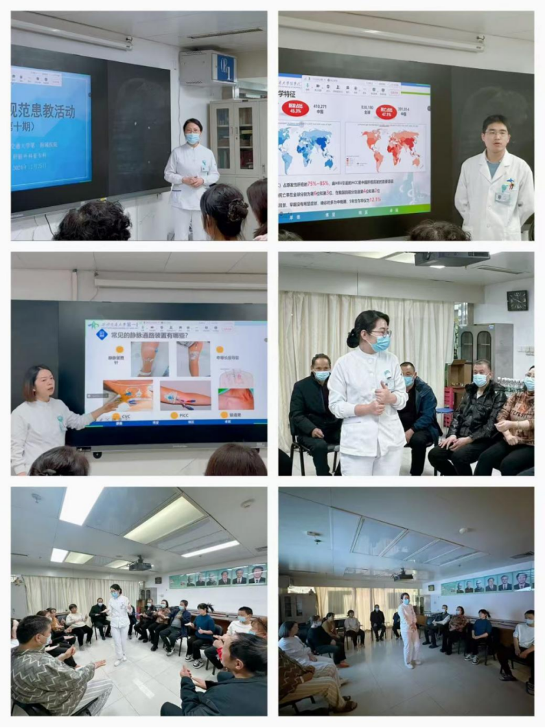 在健康科普环节,吴友伟医生为大家深入讲解了“肝细胞癌切除术后复发转移的防治”相关知识。他采用深入浅出的方式,详细阐释了肝癌术后复发的类型、时间以及复发的高危因素,还介绍了肝细胞癌根治性切除术后的复发预防措施等内容,让原本晦涩难懂的肝癌知识变得生动有趣,令在场听众收获颇丰。聂莎主管护理师则围绕“肝癌患者静脉治疗的自我照护”展开讲解。她从静脉治疗的目的、输液的注意事项以及并发症预防措施等方面入手,细致阐述了该项操作的自我照护要点,并介绍了多种行之有效的并发症预防措施。在讲解过程中,聂莎老师结合临床案例,生动展示了输液并发症的危害以及预防护理的实践效果,使听众对相关知识有了更为直观、深刻的认识。马意源主管护理师带来了题为“远离沉默的杀手——肝癌的早期筛查”的知识讲解。她从肝癌的高危人群、常见肝脏体检方法以及肝癌的早期筛查手段三个方面进行介绍,让大家充分了解了肝癌的危害、预防方法以及“早期识别 及时干预”的重要性。本期健康科普团队还针对患者提出的疑问进行了耐心细致的解答,赢得了患者及家属的一致赞誉。