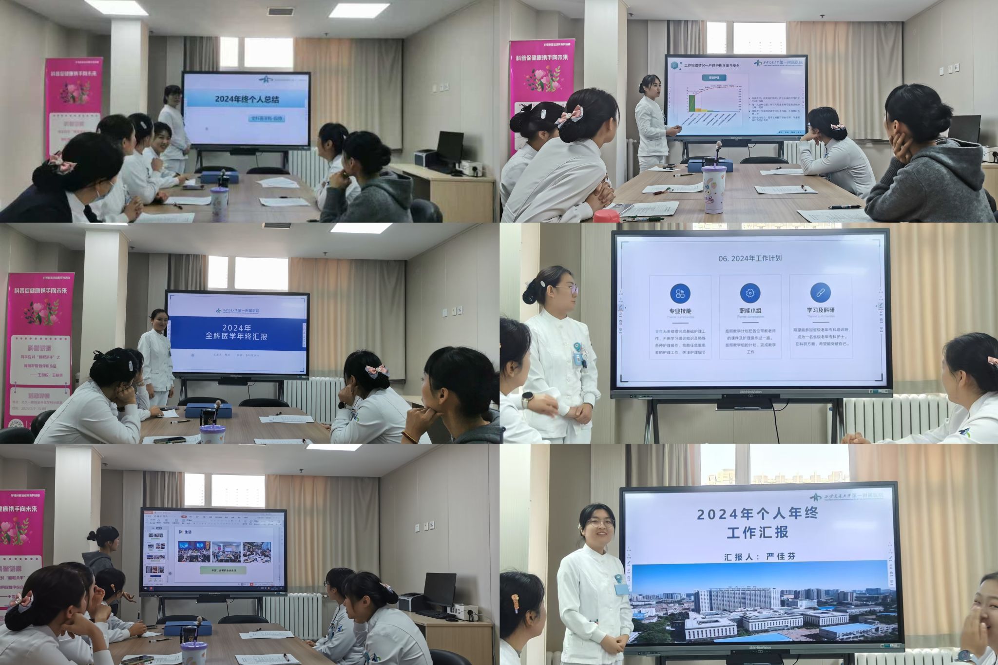 会上,首先由强彩萍护士长进行讲话,接下来,每一位护理同仁轮流登台依次进行个人年终述职报告。分别从个人基本情况、工作完成情况、不足之处及未来展望等方面进行汇报,每位护士都以真挚的感情和诚恳地态度回顾了自己一年的心路历程、成长与收获,以及对新一年的工作构想与职业规划,他们的汇报中既有专业数据的支撑,也有令人放松的节日活动,让人在轻松愉快的氛围中,感受到了护理工作的艰辛与不易,也看到了他们身上的闪光点与成长轨迹,职能小组组长也分别从各自的职能组出发,总结了2024年的硕果与来年的展望。