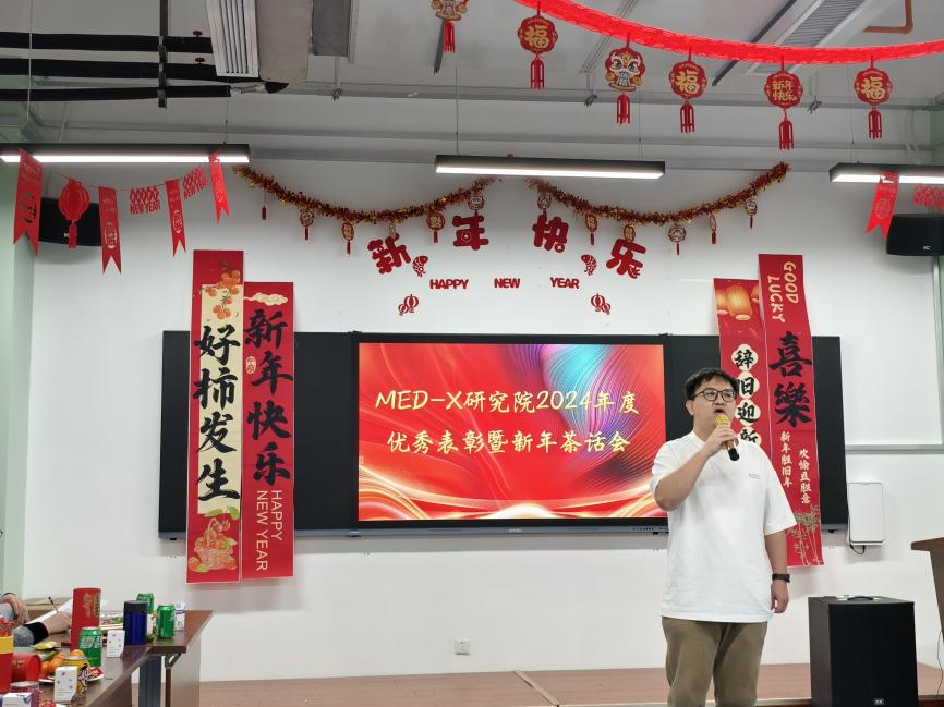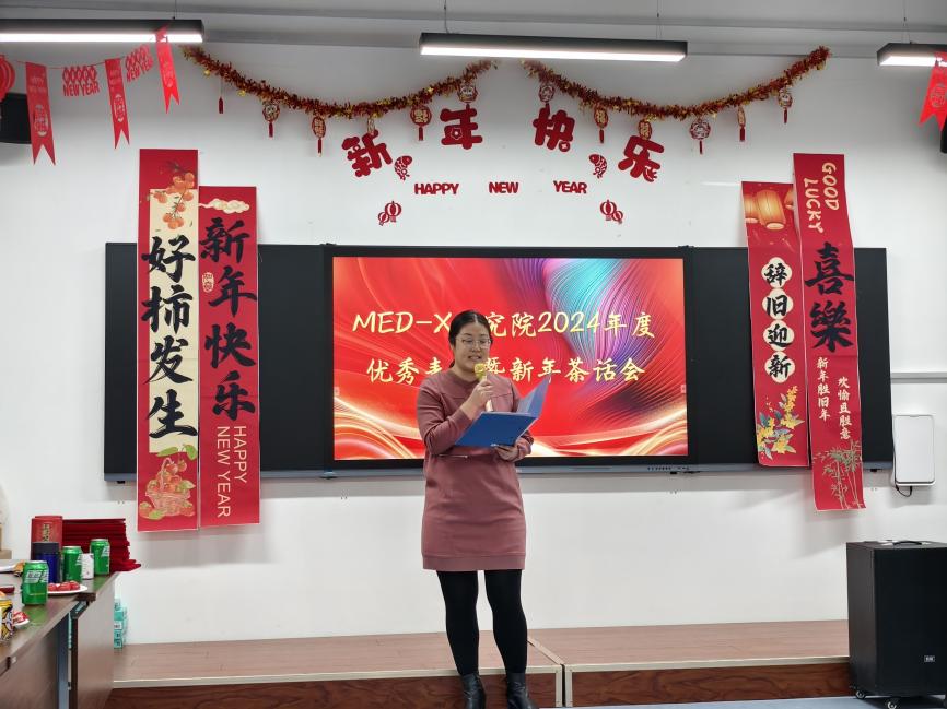 2025年1月17日,由创新港MED-X研究院党支部、团支部及科教部门工会主办的MED-X研究院2024年度优秀表彰暨新年茶话会在创新港顺利举办。MED-X研究院副院长兼综合办公室主任王亚楠教授、副主任张田香以及研究院全体师生近100人齐聚一堂,总结过去,展望未来。
