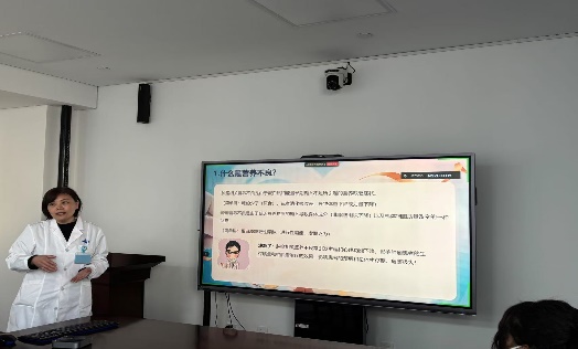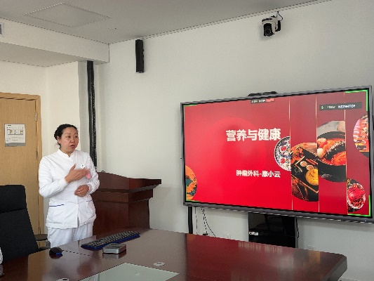 活动于下午3点正式开始, 由康小云副护士长主持, 许多患者和家属早早赶来,期待着能从讲座中获取实用的信息。大讲堂首先由康小云副主任护师、国家级营养专科护士带来“肿瘤患者营养补充”的专题讲座,通过与现场患者家属互动了解其关注的问题,以其丰富的临床经验和专业知识,深入浅出地讲解了肿瘤患者在治疗过程中营养补充的重要性。她指出,肿瘤是一种消耗性疾病,患者往往会出现营养不良的情况,而合理的营养补充不仅能够增强患者的免疫力,还能提高患者对治疗的耐受性,改善生活质量。还详细介绍了各类营养素的作用以及肿瘤患者饮食搭配的要点,例如高蛋白食物的选择、蔬菜水果的摄入比例等,并通过生动的案例和图片,让大家更直观地理解如何为肿瘤患者制定科学的营养食谱。