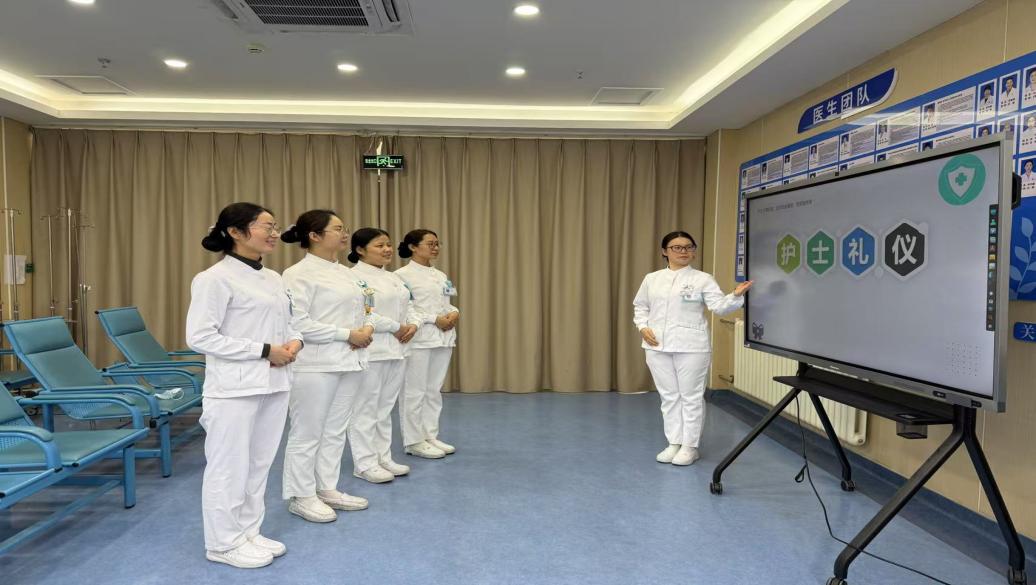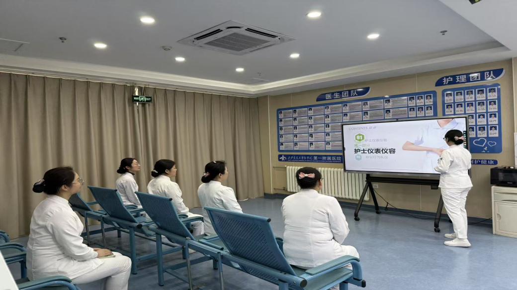 为提高护士职业素养,提升服务品质 ,保障患者就医体验,西安交通大学第一附属医院皮肤科护理团队于2025年2月14日开展了护士礼仪培训学习。本次学习由张少君护士长组织,肖植匀护士主讲,旨在提高住院患者满意度,促进护理工作顺利开展。