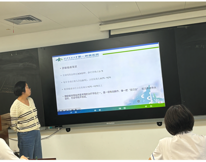 首先由王蓉护理师向全体护士讲授严重多发骨折的护理查房,分享了一例股骨干骨折合并胫腓骨近端骨折患者的相关知识,常见原因及临床特点,护理问题及护理措施,以及术后的功能锻炼及康复指导,进一步丰富了全体护理人员对严重多发骨折的护理知识。